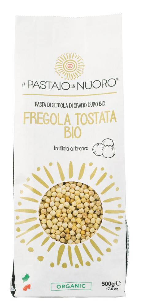 Die geröstete Fregola aus Hartweizengrieß ist eine schmackhafte Beilage zu Fleischgerichten. Die Pasta wird durch Bronzemodeln gepresst, so dass sie eine raue Oberfläche hat, die viel Sauce aufnehmen kann. Sie schmeckt auch gut in Salaten und Suppen.
